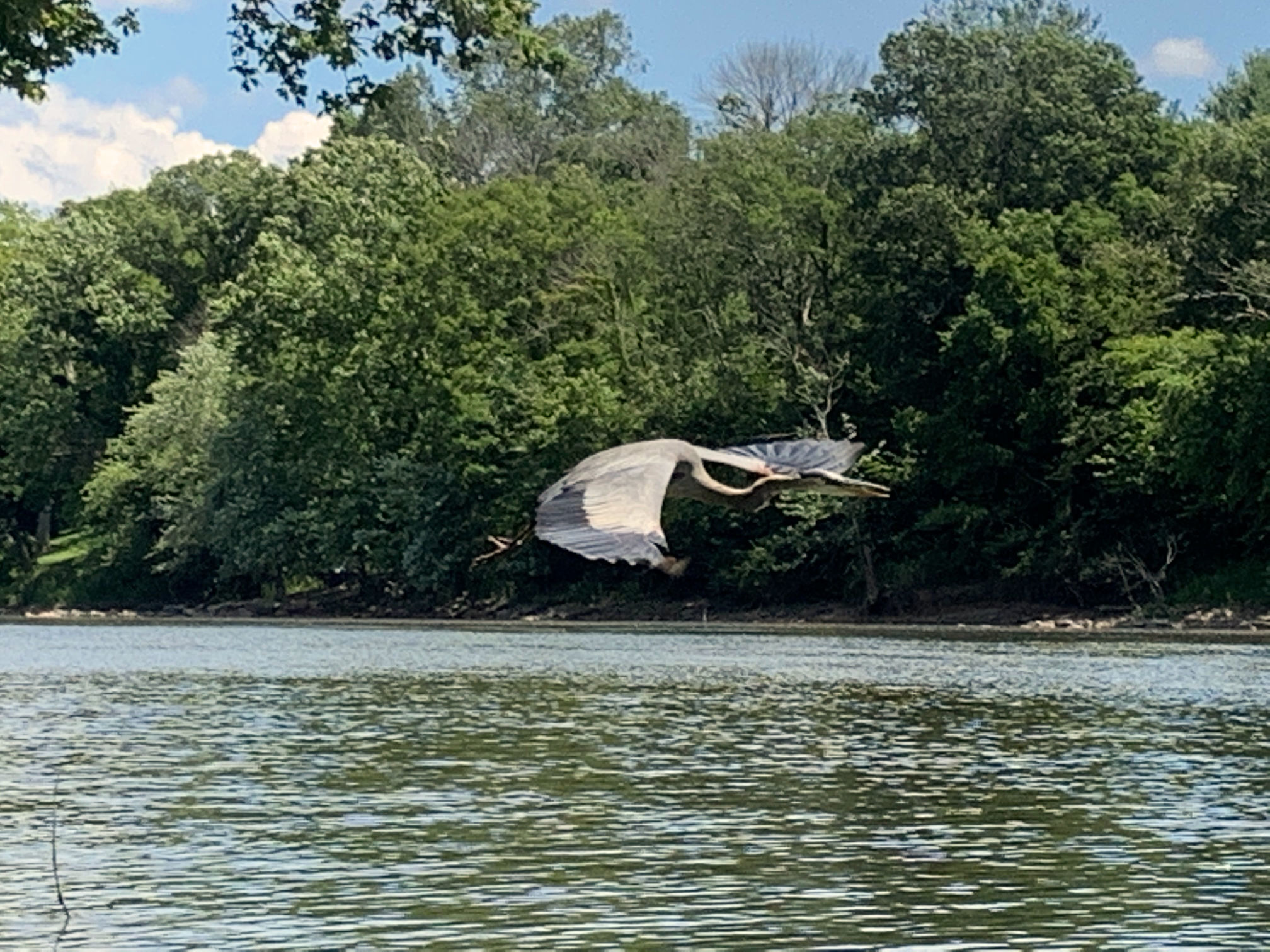 With the wind at our back, it was a nice, leisurely float back down river. I was probably doing more course-correcting than actual paddling. More herons were circling, and at one point, there were three circling around (see the picture above).